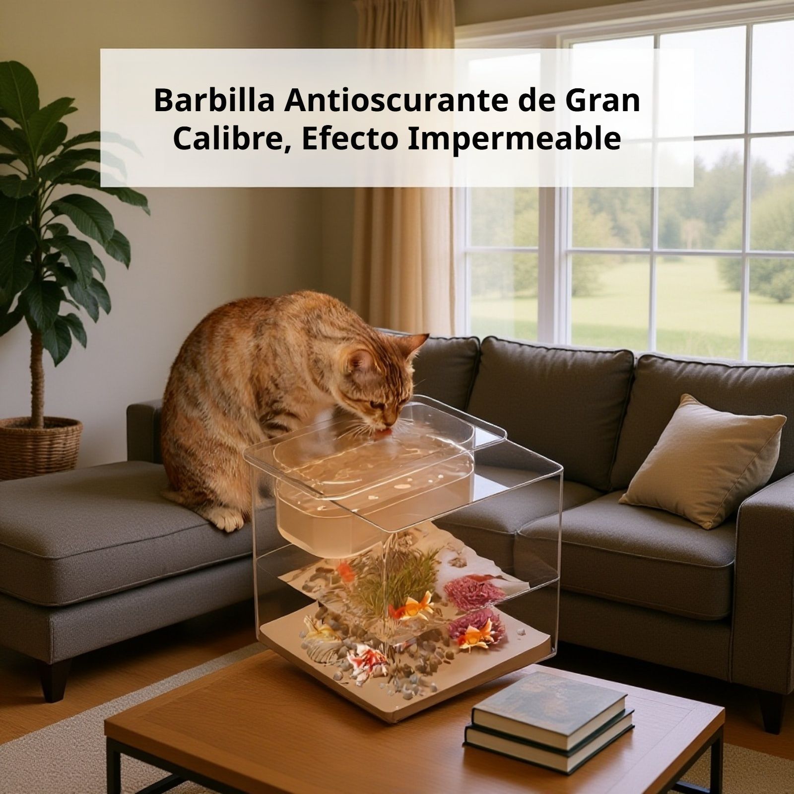 Fuente de agua para gatos con diseño de acuario acrílico